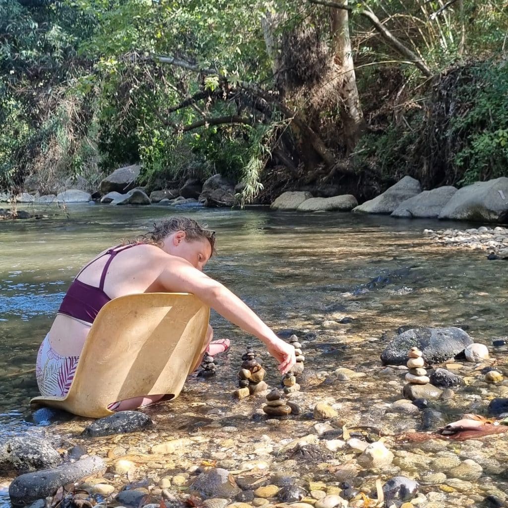 מרגישה איך לאט לאט הריפוי קורה פה, עוד טבילה עוד האזנה לזרם עוד הסכנה לשהות בתוך המים.